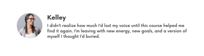 "I just wanted to say I am really enjoying the course so far. It really has inspired me to dig deep and figure out what I want. I fall into the camp of not knowing what my dreams are, and it is truly comforting to know that others have experienced that too. The modules have been fantastic, and I really got a lot out of the coaching hour. I haven’t felt this hopeful about my career in a long time." - Jennifer T