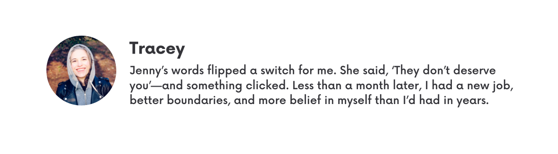 "I came in thinking I needed a new job. I left realizing I needed to come home to myself first. Once I did that, the right opportunities started showing up—including a role I never would have considered before, but that's perfectly aligned with who I am now." — Alexandra P., Former Banking Employee